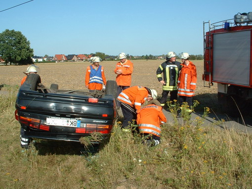 Eine Familie überschlug sich mit dem Pkw bei einem Überholmanöver. Vater Mutter und Kind kamen mit leichten Verletzungen in Krankenhaus.